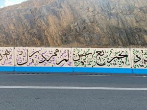 *بلدية بني حسن تنتهي من تنفيذ أكبر جدارية للغة العربية بالمنطقة * الباحة أنهت بلدية محافظة بني حسن بمنطقة الباحة