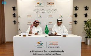 وقعت هيئة تطوير محمية الإمام عبدالعزيز بن محمد الملكية مذكرة تفاهم مع هيئة التراث لخدمة الأهداف المشتركة ذات العلاقة بالمحافظة على المواقع الأثرية وتأهيلها
