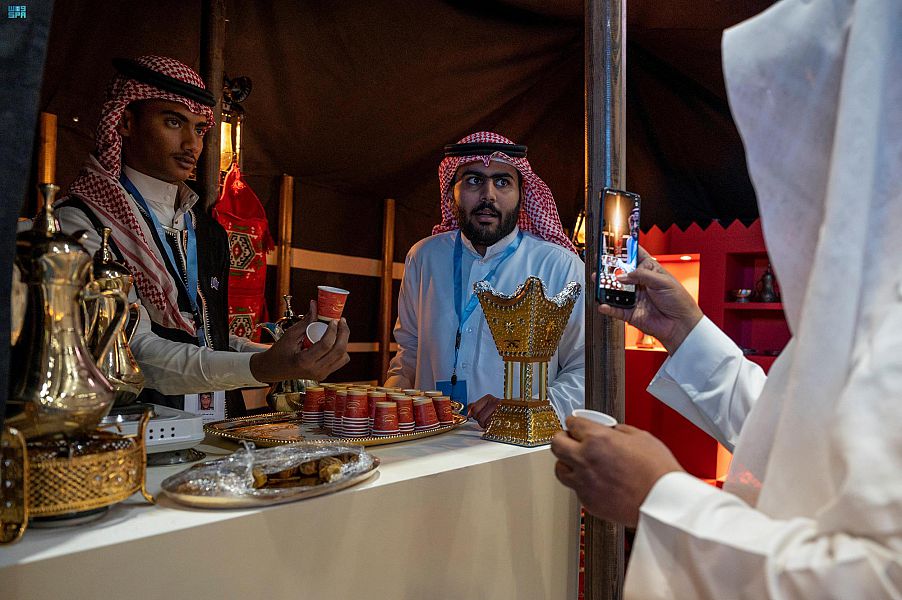 كما تضمن الركن استعراضاً لمجموعة من الأدوات المستخدمة في تحضير القهوة السعودية ومنها: المحماس، وليف الدلة، والفناجين، ومبرد القهوة، والمعاميل، والنجر، إضافةً إلى بعض أصناف التمور التي تقدم مع القهوة السعودية، فيما تعرف زوار المعرض على أبرز مكونات القهوة السعودية في مختلف مناطق المملكة، ودرجات الاختلاف بينها، والتي تتضح من خلال النكهة واللون، حيث يعرف بأن لون القهوة في المنطقة الجنوبية يتميز بدرجته الفاتحة، فيما يزداد غمقها كلما تم الاتجاه نحو الشمال .