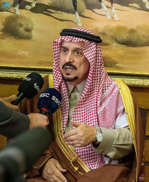 ولدى وصول سموه كان في استقباله صاحب السمو الملكي الأمير متعب بن عبدالله بن عبدالعزيز، وصاحب السمو الملكي الأمير فيصل بن خالد بن عبدالعزيز مستشار خادم الحرمين الشريفين، وصاحب السمو الملكي الأمير بندر بن خالد الفيصل رئيس مجلس إدارة هيئة الفروسية رئيس مجلس إدارة نادي سباقات الخيل.