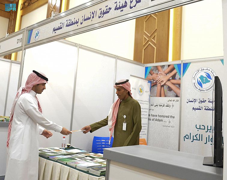 يشارك فرع هيئة حقوق الإنسان بمنطقة القصيم، في معرض القصيم للكتاب في نسخته الرابعة والمقام حالياً على أرض مركز الملك خالد الحضاري بمدينة بريدة، عبر جناح خاص لها يعرف الزوار أهداف ورسالة الهيئة وخدماتها تجاه حقوق الإنسان لضمان أمنه وحريته.