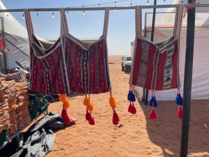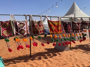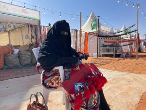 المشاركة رفعة الدوسري تقول: أشارك في المهرجان منذ نسخته الأولى بمجموعة من الأعمال اليديوية التي تعكس موروث المنطقة وما يتعلق بمستلزمات الإبل .