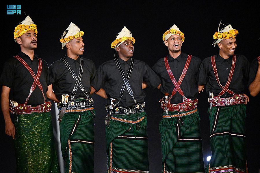 وأعاد العرض المسرحي ذكرى بعض العادات التراثية لأهالي منطقة جازان قديماً، وعرض لفن ” الدلع ” الذي يُعد رقصة جماعية غنائية خفيفة الحركة ، إلى جانب فني الزيفة والسيف .