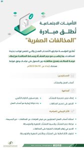 أعلنت المؤسسة العامة للتأمينات الاجتماعية إطلاق مبادرة المخالفات الصفرية والتي تأتي ضمن جهود المؤسسة لتحقيق أهدافها الإستراتيجية من خلال تعزيز العلاقة الإيجابية بأصحاب العمل وزيادة رضا العملاء وتوعيتهم حول المخالفات التأمينية ومساعدتهم على تجنب الوقوع فيها.