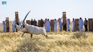 أطلقت هيئة تطوير محمية الإمام عبدالعزيز بن محمد الملكية والمركز الوطني لتنمية الحياة الفطرية الملكية اليوم، 30 ظبي ريم و10 من المها الوضيحي في محمية الملك خالد الملكية.
