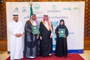 وثمن سموه التعاون بين الجهات الحكومية والخاصة والقطاع الثالث لتحقيق الأهداف التنموية التي تصب في مصلحة المواطن وتنمية الوطن ورفعته والسعي لتحقيق مستهدفات رؤية المملكة ٢٠٣٠ ومستهدفاتها.