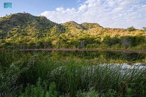 أسهمت الأمطار الغزيرة التي تواصل هطولها على منطقة الباحة ومعظم محافظاتها خلال الأسابيع الأخيرة في اكتساء الأرض بالغطاء النباتي الذي يتخلله خرير الماء المنساب من العيون الجارية مشكلاً شلالات جاذبة للمتنزهين وعشاق الطبيعية الساحرة، إضافة إلى كثافة النباتات الموسمية والحشائش الغنية بالمكونات الطبيعية.