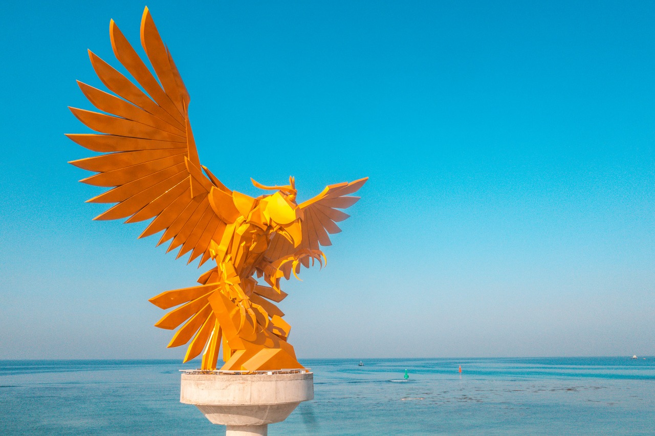 ويجسّد التمثال بشكله الفريد صقراً ذهبياً ضخماً ارتفعت أجنحته لتمتد في الأفق على ساحل مدينة جدة لعدة كيلومترات. التمثال الفريد من نوعه والمصمّم من قبل الفنان كي ويست يطفو وسط المياه الزرقاء لكورنيش جدة الذي يستقبل الآلاف لحضور جائزة السعودية الكبرى لسباق الفورمولا 1.