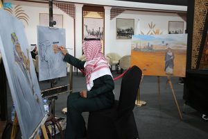 ويستمتع الزائرون للمهرجان بالأنغام الموسيقية التراثية المحلية والمقطوعات العربية الأصيلة، يؤديها مجموعة من الموسيقيين المميزين، حيث خصصت صالة عزف موسيقية تتوسط صالة عرض البوثات، يتنوع فيها العازفون بآلاتهم الموسيقية كفن الربابة الذي ارتبط ببيوت الشعر والإبل، وفن الكمان الموسيقي مما أضفى نوعاً من الدفء على الأجواء الشتوية الجميلة. كما أتاح مهرجان الملك عبد العزيز للإبل لمحبي الفنون التشكيلية تجربة فنية متميزة ومتنوعة يتعرفون فيها على طرق الرسم وأنواعه عبر ركن يقدم فيه الفنان التشكيلي عبد العزيز بن عبدالله الفليح مجموعة من أعماله المختلفة جذبت أعين الزوار عبر لوحات فنية تحاكي تراث الجزيرة العربية وما تشكله الإبل عند العرب.