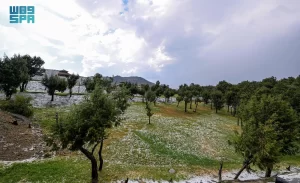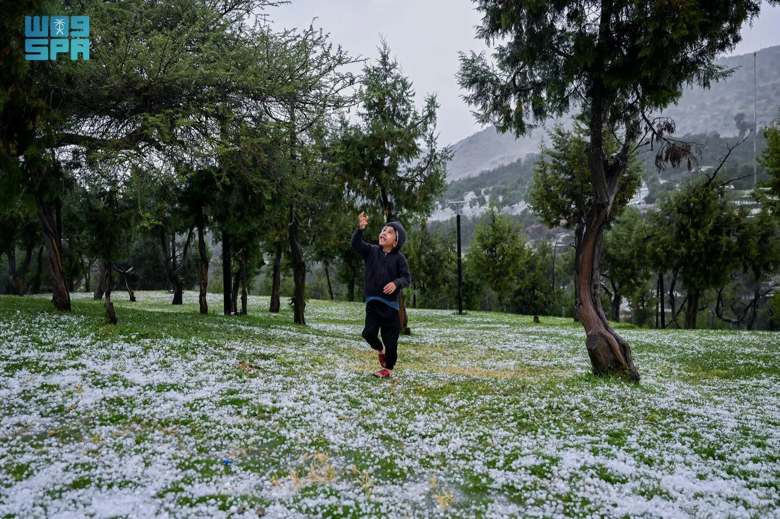 ورسمت الأمطار وزخات البرد مشاهد طبيعية على قمم الجبال التي تحولت إلى حلّة خضراء، تتخللها جداول المياه المنهمرة من سفوح الجبال إلى بطون الأودية لتمتزج بالغطاء النباتي الأخضر الذي تشتهر به المنطقة ومحافظاتها الممتدة على جبال السراة، مما تبشر بموسم سياحي جاذب في جميع محافظات المنطقة.
