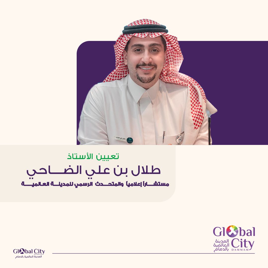 تعلن المدينة العالمية بالدمام عن تعيين الأستاذ طلال بن علي الضاحي مستشارًا إعلاميًا و المتحدث الرسمي للمدينة العالمية.