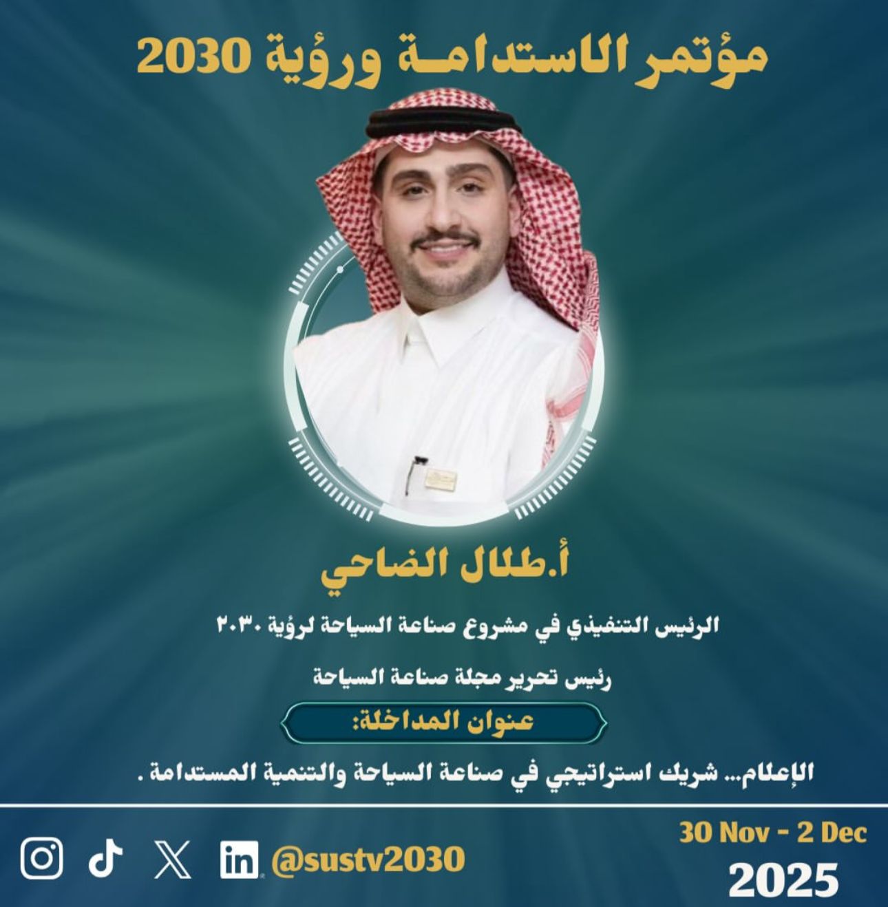 وتأتي مشاركة الأستاذ طلال الضاحي، الرئيس التنفيذي لمشروع صناعة السياحة لرؤية 2030 ورئيس تحرير مجلة “صناعة السياحة”، تأكيدًا على دوره الريادي في دعم المبادرات الوطنية وتعزيز التكامل بين الإعلام والتنمية المستدامة.