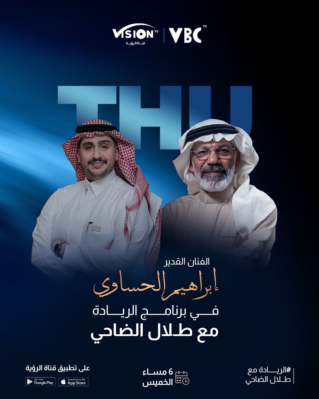 استضاف برنامج «الريادة»، الذي يُعرض عبر قناة الرؤية VBCTV، الفنان القدير إبراهيم الحسّاوي في لقاء حواري خاص قدّمه الإعلامي طلال الضاحي، تناول خلاله محطات متعددة من المسيرة الفنية للفنان، وتجربته الممتدة في المسرح والتلفزيون، إضافة إلى رؤيته لطبيعة العمل الفني والمسار المهني للممثل.