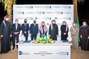 وتتضمن الاتفاقية حقوق الإطلاق الحصري لأول فندق “شتايجنبرجر بورشه ديزاين” في الشرق الأوسط, حيث وقع مذكرة التفاهم كل من الرئيس التنفيذي لصندوق التنمية السياحي قصي الفاخري، والرئيس التنفيذي لشركة دويتشه للضيافة ماركوس برنهارد.