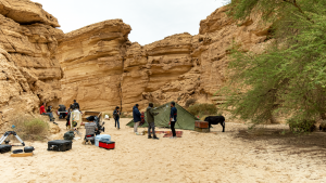 يعلن مركز الملك عبد العزيز الثقافي العالمي (إثراء) الانتهاء من تصوير فيلم “طريق الوادي” الذي تم الإعلان عنه في العام الماضي ضمن مشاركة “إثراء” في الجناح السعودي في مهرجان كان السينمائي 2021م وذلك استعداداً لإطلاقه في العام القادم. فالفيلم الذي اتخذ منحى مغاير عن الأفلام الروائية، وجاب أكثر من 10 مواقع تصوير في وسط المملكة وجنوبها، أشبه بالمغامرة، لاسيما بعد أن تم بناء قرية كاملة لتصوير الفيلم السينمائي في منطقة تنومه جنوب المملكة والتي ستبقى معْلمًا دائمًا لأهالي المنطقة ما يميزها عن غيرها، حيث عمد “إثراء” إلى تصوير قصة الفيلم الذي أعاد الحياة لقصر “المقر – النماص” بعد أن كان مغلقًا لفترة تجاوزت 8 أعوام، ما أسهم في انتعاش حركة السياحة وجذب الزوّار إلى المنطقة، في حين تم تصوير مشاهد أخرى في قرية “صدريد” التي تتنفس بشموخها وتمتاز بصلابة جذورها.