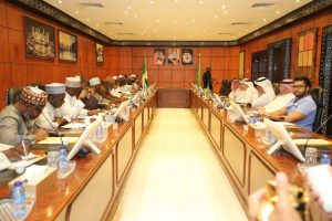 بأعضاء مكتب شوؤن حج نيجيريا – برئاسة رئيس مكتب شوؤن حج نيجيريا الأستاذ ذكر الله كنولي حسن – وبحضور رئيس لجنة مجلس الأعيان للشؤون الخارجية في نيجيريا السيد آدم محمد بوكاشوا والوفد المرافق معهم.