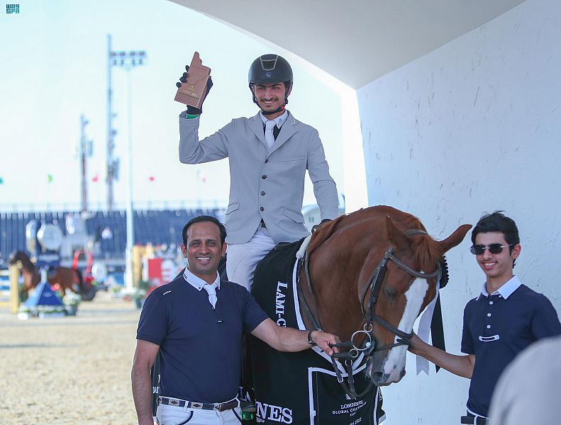 توج صاحب السمو الأمير عبدالله بن فهد بن عبدالله رئيس مجلس إدارة الاتحاد السعودي للفروسية أمس في مضمار الدرعية الفائزين بشوط الاتحاد السعودي للفروسية في ثاني أيام جولات لونجين العالمية لأبطال قفز الحواجز التي تأتي ضمن أولى الفعاليات الرياضية التي يحتضنها موسم الدرعية.