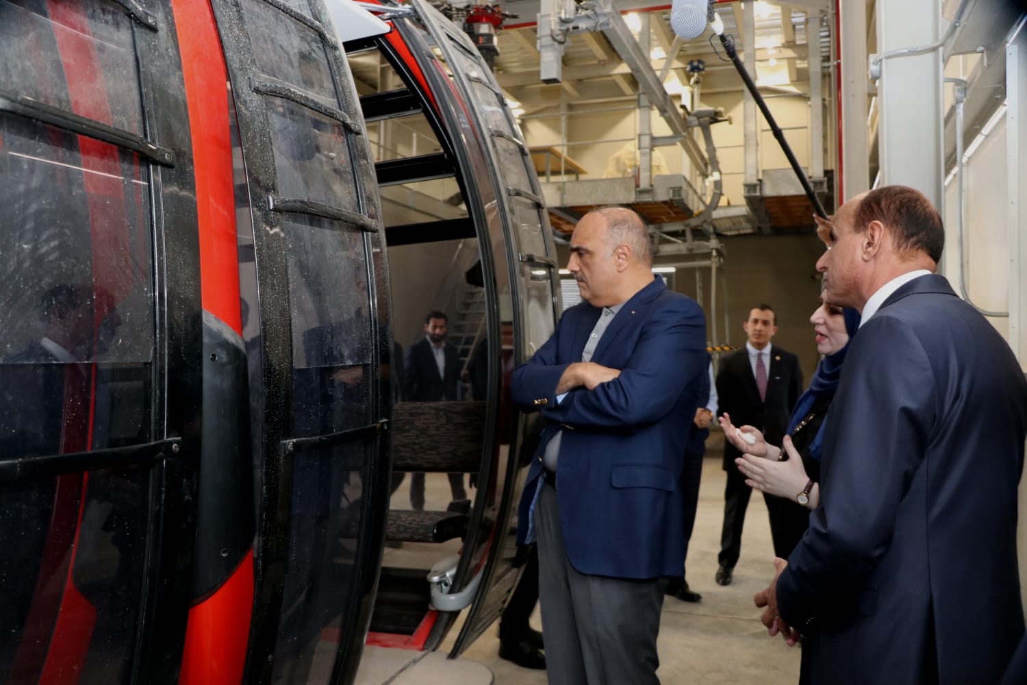 واستمع رئيس الوزراء من مدير عام المناطق التنموية رئيس الفريق الفني المشرف على المشروع، المهندسة أروى الحياري، التي أشارت إلى أنه قد تم الانتهاء من الأعمال اللازمة كافة لاستلام منظومة تلفريك عجلون رسمياً يوم الإثنين المقبل.