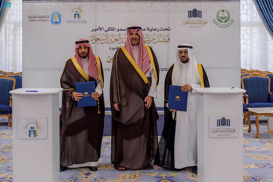 شهد صاحب السمو الملكي الأمير فيصل بن سلمان بن عبد العزيز أمير منطقة المدينة المنورة، مراسم توقيع اتفاقيات تعاون ثنائية بين مجمع الملك عبد العزيز للمكتبات الوقفية، مع الجامعة الإسلامية وجامعة طيبة بهدف الاستفادة من الإمكانيات البحثية والعلمية وتبادل الخبرات بين المجمع والجامعتين.
